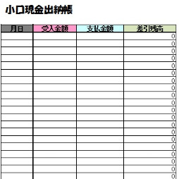 小口現金の充当と出納の記録、管理につかうテンプレートです。