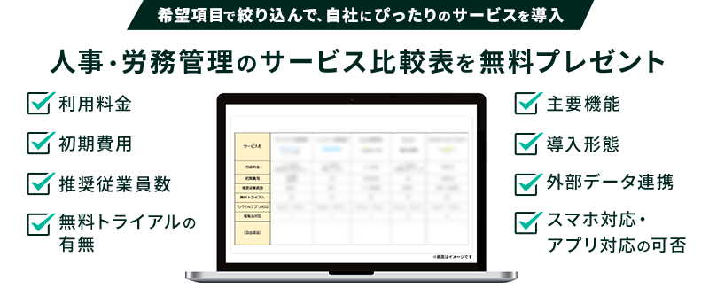 人事・労務管理に関するサービス比較表と各種資料をまとめて申し込む※すべてのサービスをチェックすると選択可能です